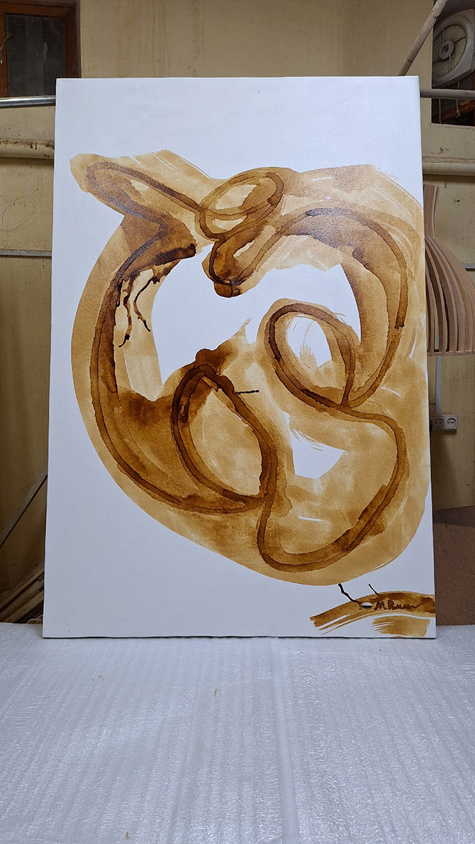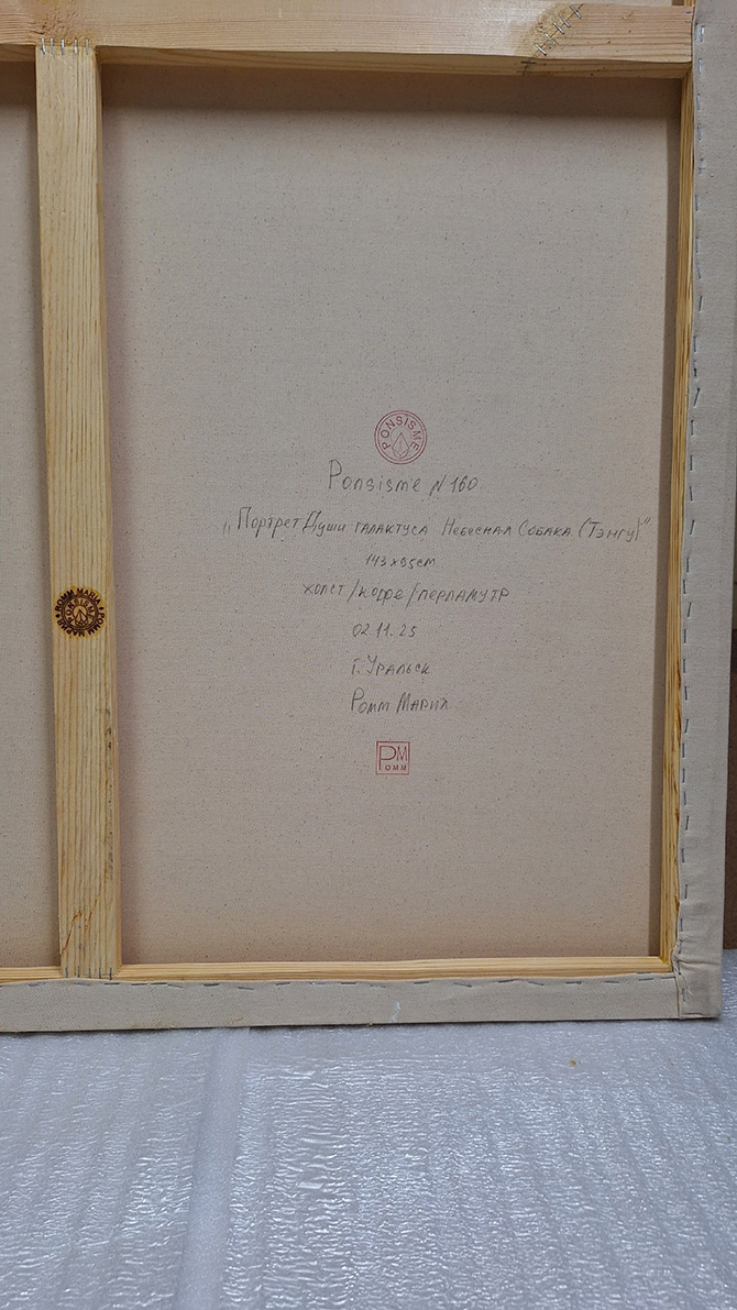 Ponsisme. Понсизм-160 (Портрет Души Галактуса Небесная Собака(Тэнгу) 143х95 см) холст,кофе,перламутр 02.11.25